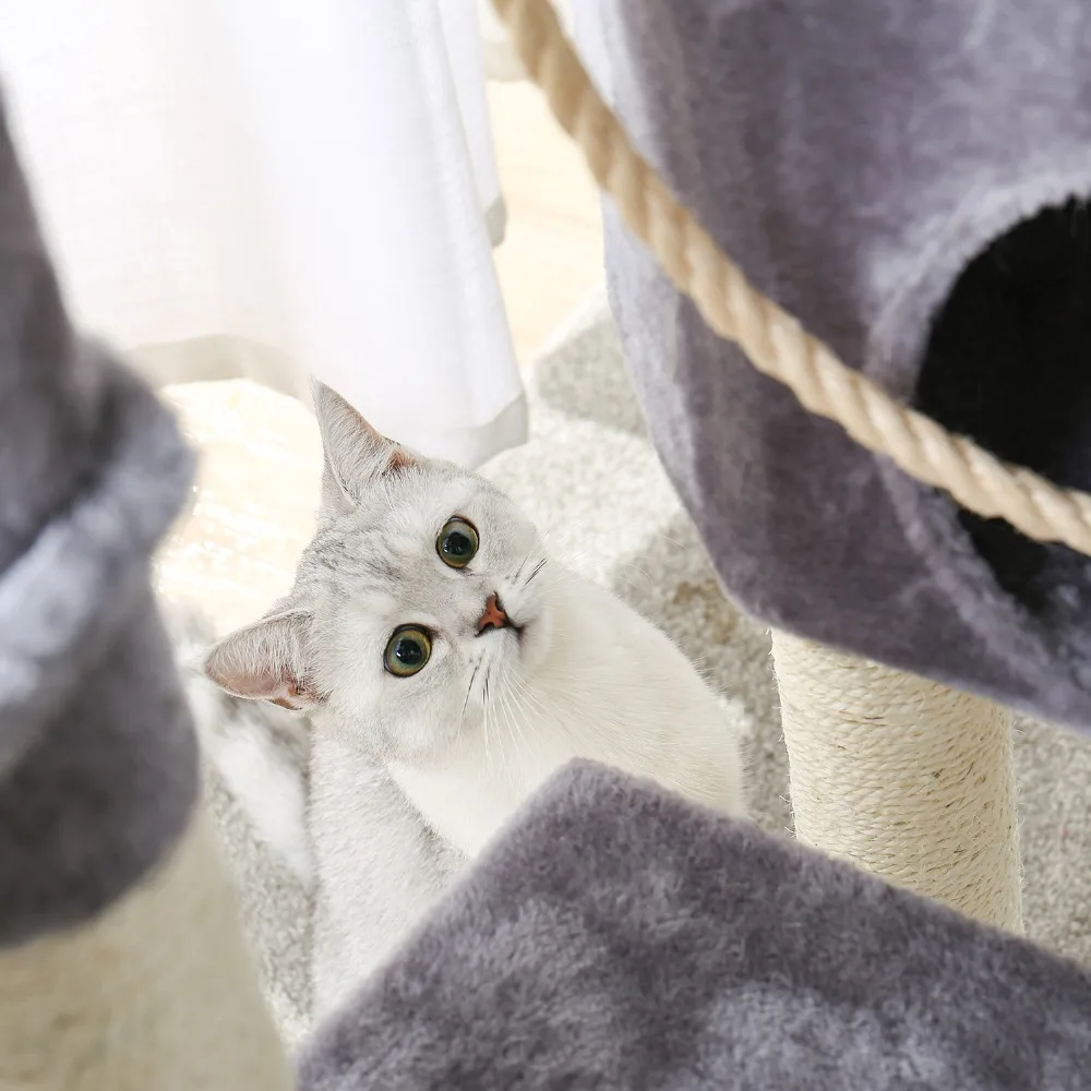 STURDY AND SAFE: Stability is always priority. The bottom base is reinforced that ensure its stability of the whole cat tree